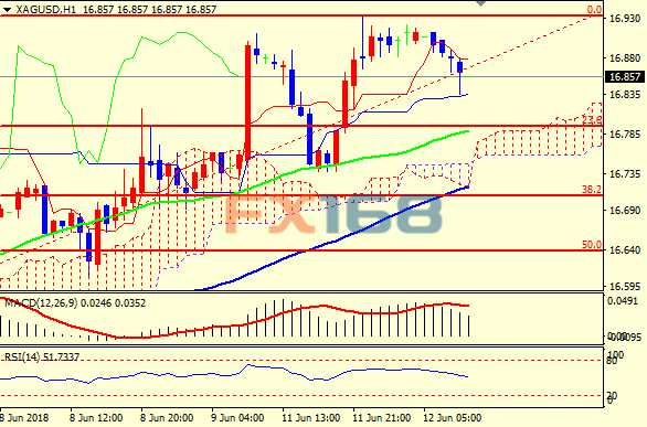 F 周二(6月12日)亞市盤中,現(xiàn)貨白銀溫和回落,現(xiàn)交投于16.86美元/盎司附近,早盤美指反彈,一度逼近94整數(shù)關(guān),此外避險(xiǎn)情緒回落也是銀價(jià)早盤承壓的因素之一。