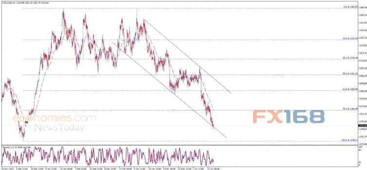 F 資訊網(wǎng)站Economies.com在周四(6月28日)發(fā)布的報(bào)告中稱,黃金價(jià)格下探1250.00的水平,支撐了日內(nèi)看跌的預(yù)期,需要提醒的是金價(jià)的下一個(gè)目標(biāo)位是1236.41美元/盎司,金價(jià)持穩(wěn)在1267.00下方是延續(xù)下跌趨勢(shì)的關(guān)鍵條件。