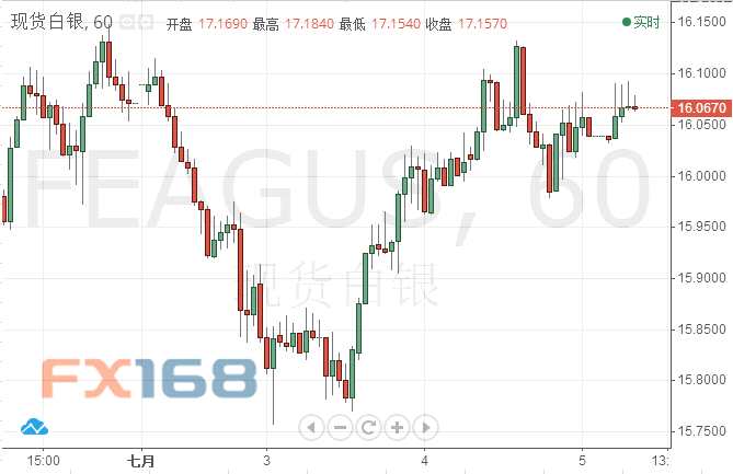 摘要: F周四(7月5日)亞市盤中,現(xiàn)貨白銀小幅震蕩交投于16.07美元附近。銀價(jià)收復(fù)16美元關(guān)口因美指本周走勢疲軟。本交易日將有眾多重磅數(shù)據(jù)以及事件將公布,除了小非農(nóng)ADP之外,本交易日的重頭戲?yàn)橹芪?:0