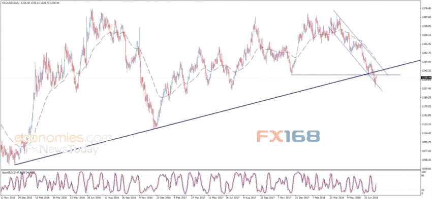 F 資訊網(wǎng)站economies.com在周一(7月23日)發(fā)布的報告中表示,黃金顯示了跌勢反彈的信號,支撐了全面下跌的預(yù)期,金價受到50日均線的負面壓力,運行在日圖的下跌通道之中,等待金價跌向目標(biāo)位1204.80美元/盎司,條件是金價需持穩(wěn)在1243.00美元/盎司下方。