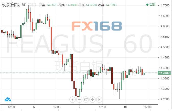 F 周三(10月10日)亞市盤中,現(xiàn)貨白銀短線震蕩交投于14.40美元水平附近,盡管白銀跌勢(shì)暫緩,但是其整體漲勢(shì)依舊受到較強(qiáng)美元的壓制。技術(shù)面來看,白銀短線的反彈趨勢(shì)受阻于4小時(shí)圖中的100以及100周期均線,這將在一定程度上壓制白銀短線的漲勢(shì)。