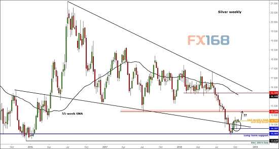 由于美元漲勢的暫停,銀價在9月結束了連續(xù)三個月的跌勢,其在14美元的長期支撐附近展開強勁反彈。
