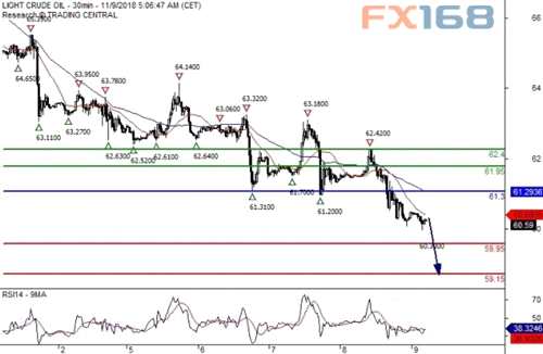 交易策略:傾向于在61.30水平下方做空,目標(biāo)指向 59.95和59.15。