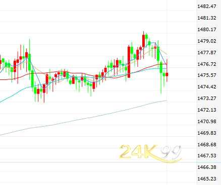 摘要: 24K99(北美)訊現(xiàn)貨黃金周二(12月17日)窄幅盤整,美市盤中最高上探至1480.36美元/盎司,金價(jià)自開盤后震蕩上行,觸及日內(nèi)高位后轉(zhuǎn)跌,探底后回升,仍運(yùn)行在1470關(guān)口上方。白銀小幅下跌,盤中