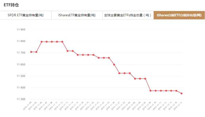 iShares白銀ETF12月17日白銀持有量與上一交易日減少23.25噸