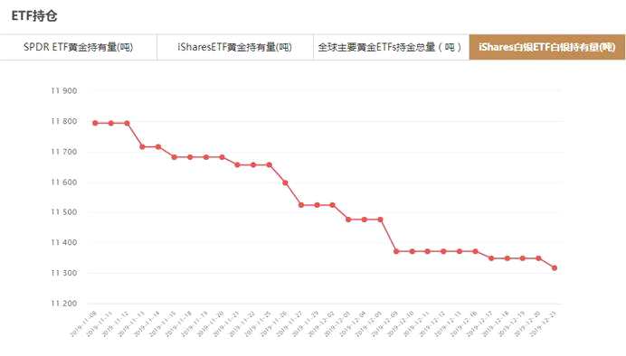 iShares白銀ETF12月23日白銀持有量與上一交易日減少31.95噸