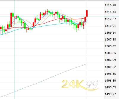 摘要: 24K99(北美)訊現(xiàn)貨黃金周一(12月30日)溫和上漲,美市盤中最高上探至1515.80美元/盎司,金價走勢較為起伏,在開盤走高后一度下挫,觸及日內(nèi)低位后反彈。白銀也繼續(xù)走高,盤中最高觸及17.93