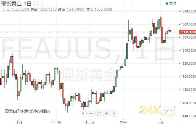 周二(2月11日)亞市盤中,現(xiàn)貨黃金小幅下跌,現(xiàn)報1569美元/盎司附近。Kshitij咨詢服務(wù)團(tuán)隊(Kshitij Consultancy Service)周二最新撰文,對黃金、白銀和原油后市走勢進(jìn)行前瞻分析。
