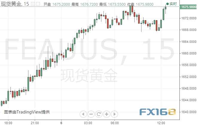 (現(xiàn)貨黃金15分鐘線圖 來(lái)源:FX168)