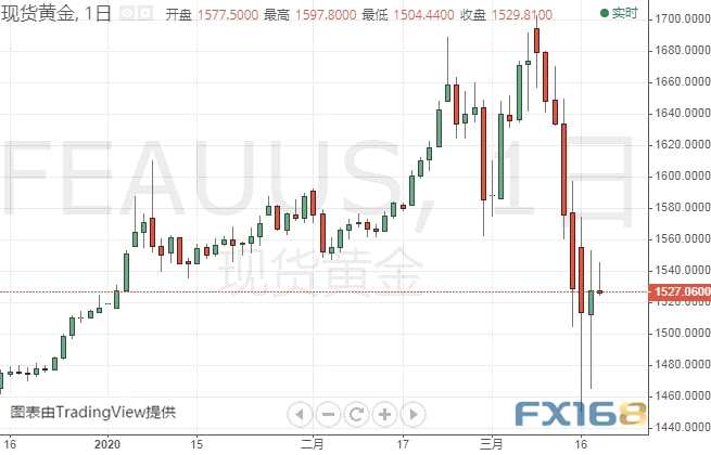 (現(xiàn)貨黃金日線圖 來源:FX168)