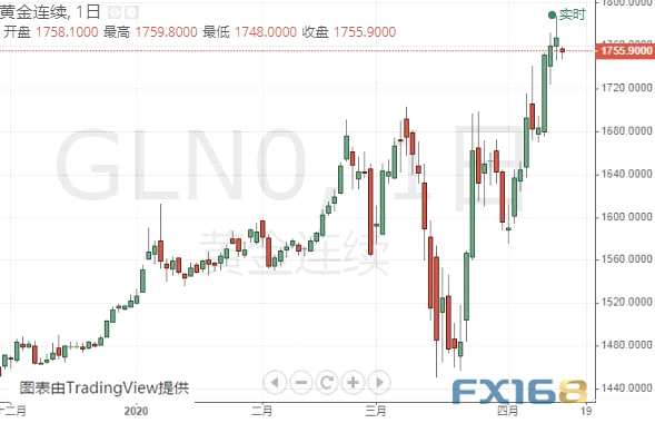 COMEX 6月黃金期貨周二收漲0.4%,報(bào)1768.90美元/盎司,此前曾觸及2013年2月以來(lái)的最高水平1788.80美元/盎司。