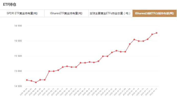 iShares白銀ETF7月17日白銀持有量為16260.30噸,與上一交易日增加49.25噸。