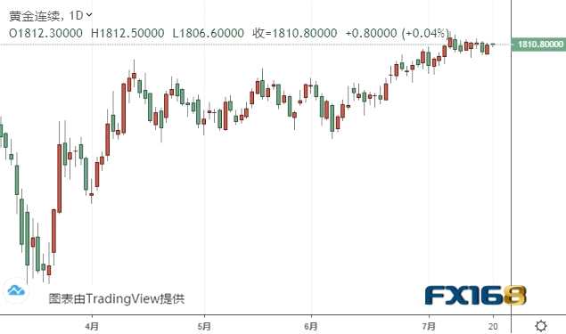 摘要: F周一(7月20日)亞市尾盤,現(xiàn)貨黃金略微走低,現(xiàn)報1808美元/盎司左右。黃金期貨位于1811美元/盎司附近。