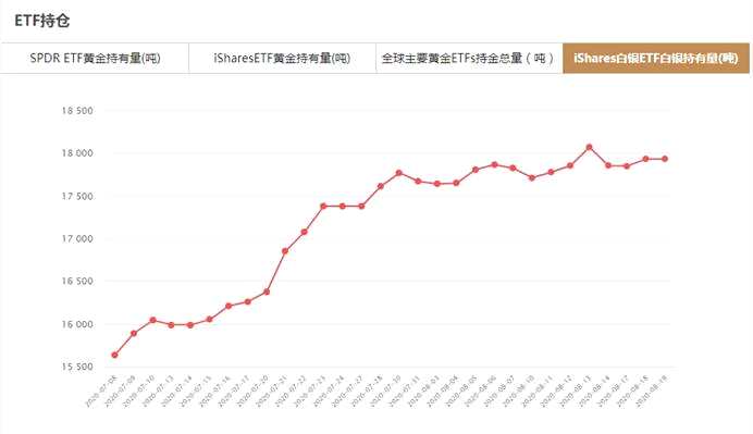 iShares白銀ETF8月19日白銀持有量為17933.27噸,與上一交易日持平。