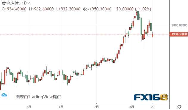 摘要: F周四(8月20日)亞市盤中,黃金期貨維持跌勢,目前位于1950美元/盎司附近。
