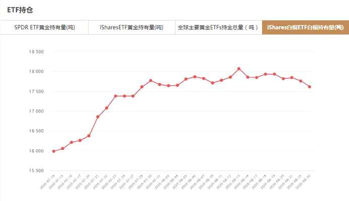 iShares白銀ETF8月26日白銀持有量為17617.63噸,與上一交易日減少144.78噸。
