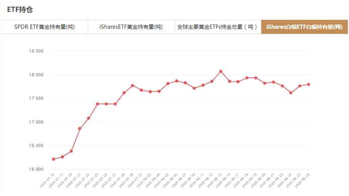iShares白銀ETF8月28日白銀持有量為17791.37噸,與上一交易日增加28.96噸。