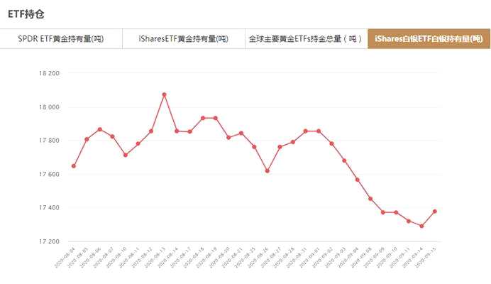 iShares白銀ETF9月15日白銀持有量為17379.04噸,與上一交易日增加86.85噸。