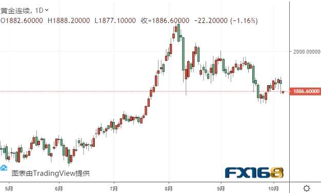 摘要: F周三(10月7日)亞市盤中,黃金期貨繼續(xù)承壓,現(xiàn)報(bào)1886美元/盎司附近。