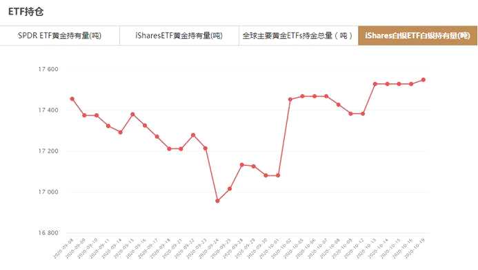 iShares白銀ETF10月19日白銀持有量與上一交易日增加20.25噸