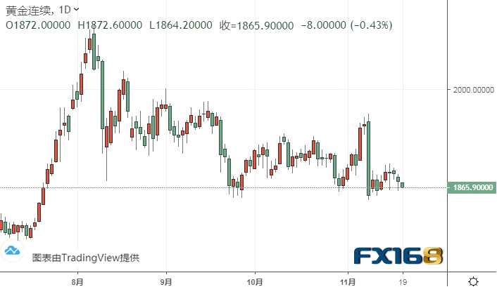 F 周四(11月19日)亞市盤中,黃金期貨維持跌勢,現報1866美元/盎司附近。Kshitij咨詢服務團隊(Kshitij Consultancy Service)周四最新撰文,對黃金期貨和白銀期貨后市走勢進行前瞻分析。