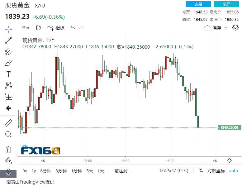 ?。ìF(xiàn)貨黃金15分鐘走勢圖 來源:FX168)