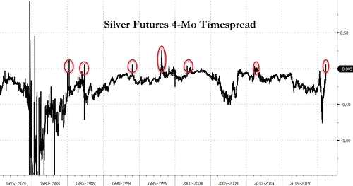 這使得2月1日0.057美元/盎司的套期圖利成為一個異常值,也是自2000年以來銀遠期曲線前端觀察到的第二陡峭的現(xiàn)貨溢價。