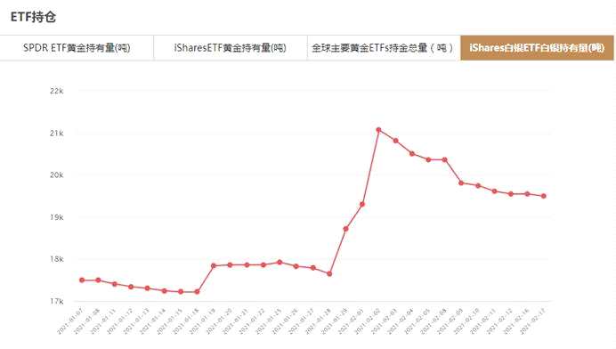 iShares白銀ETF2月17日白銀持有量為19494.60噸,與上一交易日減少57.77噸。