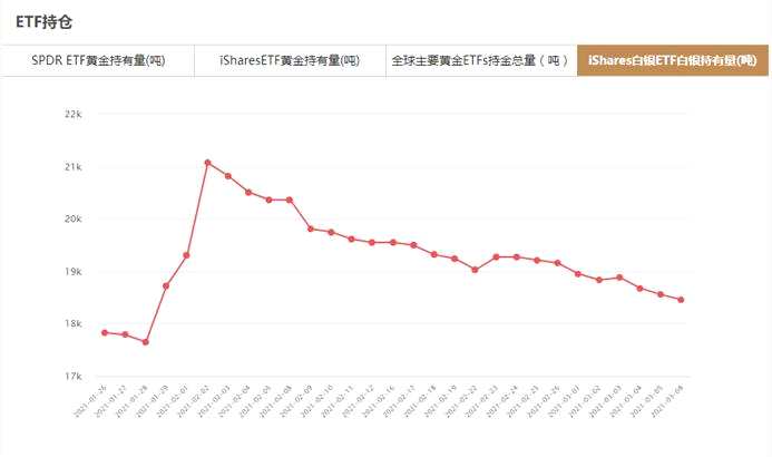 iShares白銀ETF3月8日白銀持有量與上一交易日減少101.09噸