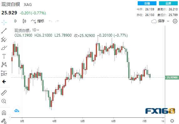白銀價格沒有跟隨黃金價格上漲的壓力。昨天其收盤呈中性,今天對26美元有看跌壓力。我們?nèi)匀徽J(rèn)為銀價可能從26.00美元反彈,并繼續(xù)其看漲趨勢,目標(biāo)價為30.00美元和31.50美元。