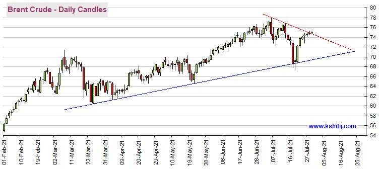 原油方面,Kshitij咨詢服務團隊表示,布倫特原油期貨和WTI原油期貨也大幅上漲。假如突破75/76美元/桶,布倫特原油可能重新測試77-78美元/桶的水平,甚至是80美元/桶。另一方面,WTI油價在75美元/桶有關鍵阻力位,短期內(nèi)可能無法被攻克。