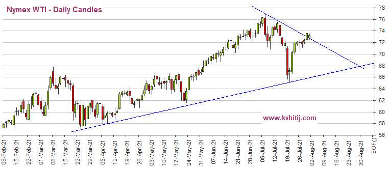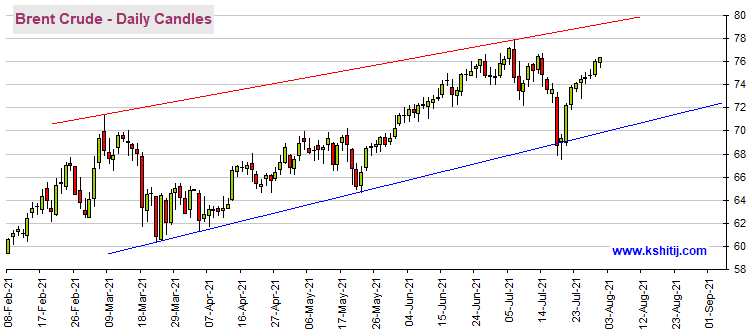 原油方面,Kshitij咨詢服務(wù)團隊表示,布倫特原油期貨和WTI原油期貨已經(jīng)從76美元/桶上方水平和74美元/桶水平回落。布油需要在短期內(nèi)跌破74美元/桶,以令前景轉(zhuǎn)為看空并在短期內(nèi)跌向72-70美元/桶;而WTI油價可能會維持在74美元/桶下方,并在近期向69美元/桶邁進。