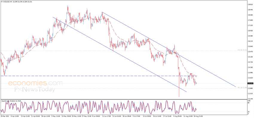 在文章中寫道,銀價出現(xiàn)溫和下跌,以嘗試跌向我們等待已久的目標(biāo)價位22.90美元/盎司。從4小時圖來看,EMA 50指標(biāo)繼續(xù)形成負(fù)面壓力。目前等待銀價進一步下滑,若跌破22.90美元/盎司,銀價可能進一步跌向下一目標(biāo)22.00美元/盎司。