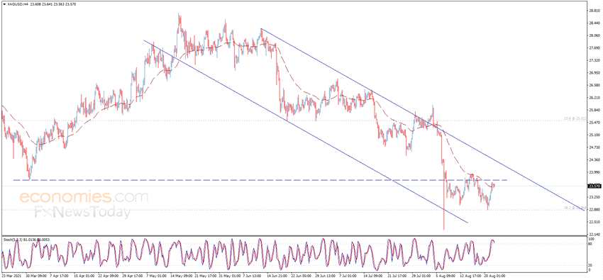 在文章中寫道,銀價一度接近23.75美元/盎司阻力,但目前開始傳遞看空信號。從4小時圖來看,隨機指標傳遞負面信號,等待這一因素推動銀價在未來一段時間繼續(xù)看空趨勢,首個目標瞄準22.90美元/盎司水平。