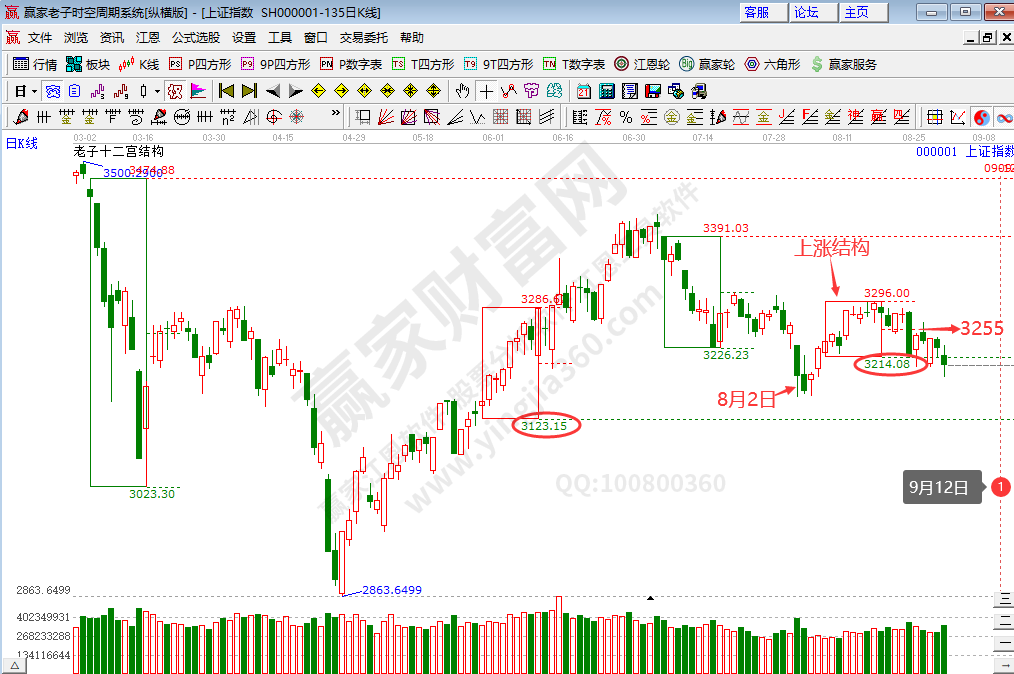 滬指8月31日以陰線收盤,贏家時空工具信號顯示指數(shù)當(dāng)前延續(xù)下跌趨勢,繼續(xù)以看空為主。指數(shù)今日跌破綠色支撐線3214點,短期重點關(guān)注此次跌破的有效性,如確認跌破3214點,下方第一支撐江恩波段百分比240度3152點,第二支撐前期上漲結(jié)構(gòu)綠色支撐線3123點;如短期重新站上3214點,將有再次挑戰(zhàn)3255點的可能。時間方面,老子十二宮顯示下一個時間窗口為9月12日。操作上,多看少做,繼續(xù)以觀察為主,等待市場新的支撐機會,更多行業(yè)板塊機會將會在贏家聊吧“大盤直播”帖中解讀。