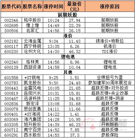 【漲停原因】漲停復(fù)盤:滄州大化再創(chuàng)新高 西水股份尾盤反包漲停