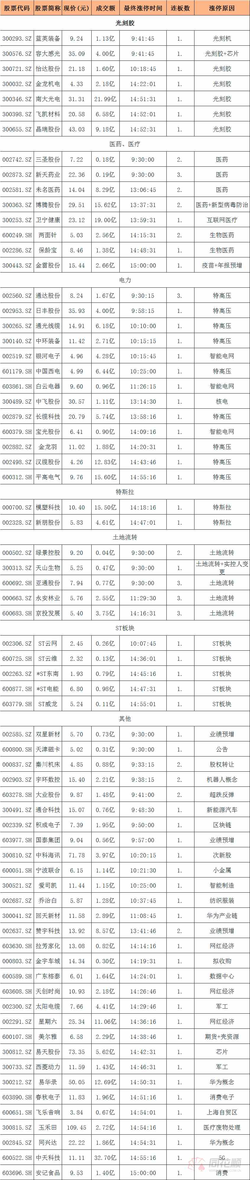 漲停復(fù)盤:大基金投資預(yù)期帶動(dòng)光刻膠概念 醫(yī)藥股活躍