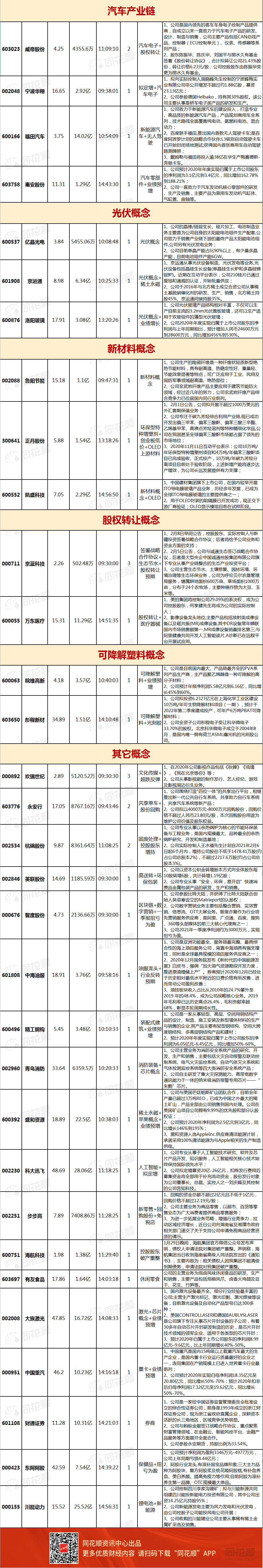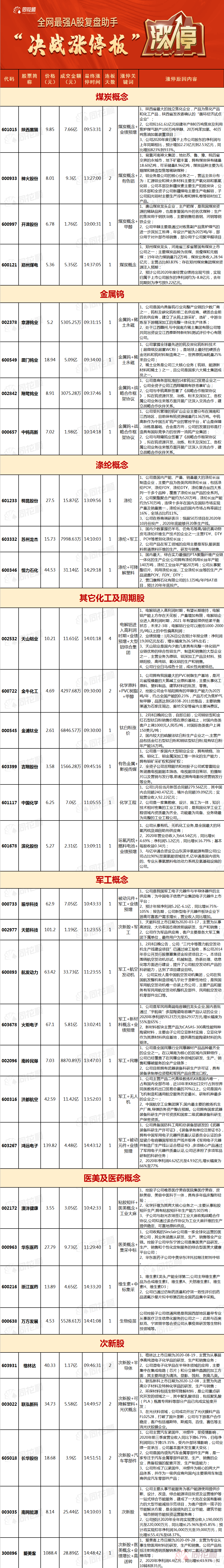盤(pán)面上看,國(guó)辦印發(fā)關(guān)于加快中醫(yī)藥特色發(fā)展若干政策措施的通知,中藥板塊應(yīng)聲走強(qiáng),東阿阿膠(000423)尾盤(pán)封板,云南白藥(000538)、仁和藥業(yè)(000650)漲7%;醫(yī)美概念領(lǐng)漲兩市,愛(ài)美客(300896)大漲20%,澳洋健康(002172)、華東醫(yī)藥(000963)漲停封板;有色、稀土概念股強(qiáng)勢(shì),廈門(mén)鎢業(yè)(600549)、章源鎢業(yè)(002378)、【翔鷺鎢業(yè)(002842)、股吧】(002842)、吉翔股份(603399)、盛和資源(600392)等多股漲停;軍工概念午后高位盤(pán)整,天箭科技(002977)、航發(fā)動(dòng)力(600893)、洪都航空(600316)等漲停。