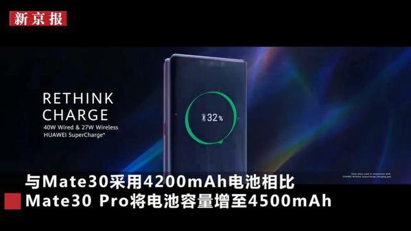 3、無(wú)敵閃充。與Mate30采用4200mAh電池相比,Mate30Pro將電池容量增至4500mAh。