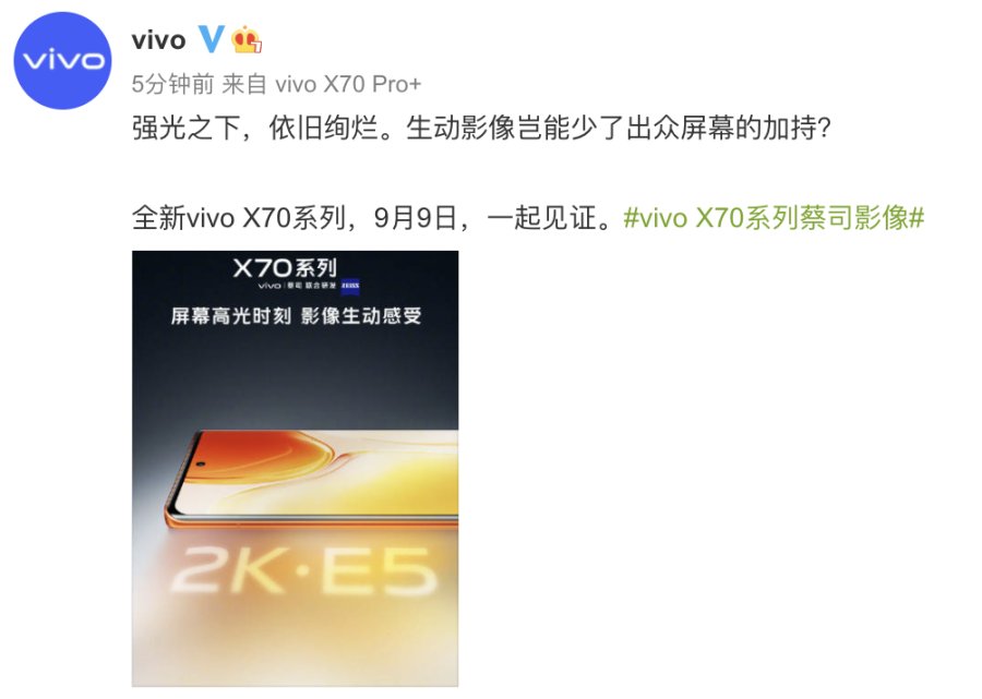 從爆料蔡司高規(guī)格玻璃鏡頭,到確認(rèn)搭載vivo首顆自研影像芯片V1,vivo X70系列作為影像旗艦,各種曝光信息已經(jīng)足夠讓人驚喜。除了更極致、更領(lǐng)先的影像體驗(yàn)外,今天vivo官方微博發(fā)布的一張X70系列懸念海報(bào),做實(shí)這款年度旗艦將搭載業(yè)界領(lǐng)先的2K E5屏,繼影像能力之后,X70系列的屏幕素質(zhì)同樣拉滿。