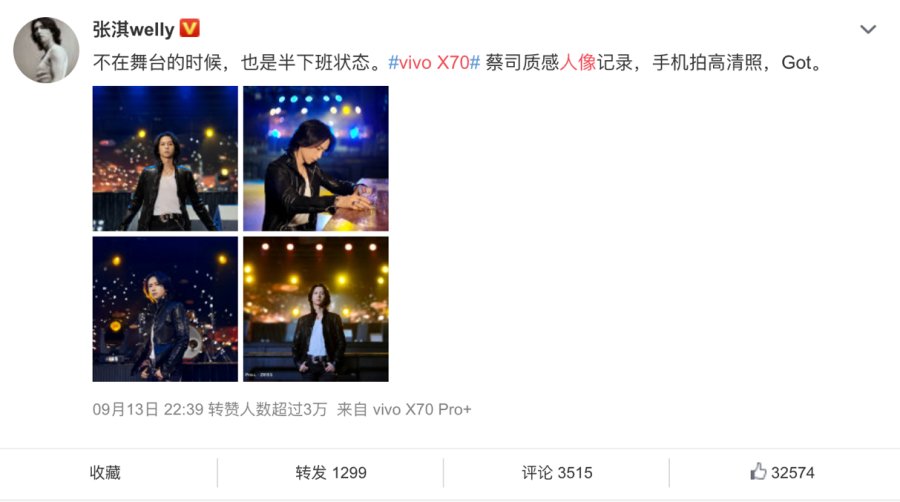 ?。??讓每個人都能自由創(chuàng)作,這也絕非是vivo的一句空談。X70系列上實現(xiàn)的蔡司四大鏡頭包,讓用戶真的實現(xiàn)一鍵體驗蔡司經(jīng)典人像虛化風格。網(wǎng)友評價X70系列:“人像與光斑都非常自然和諧,與真的蔡司鏡頭直出非常接近了!”“人像拍攝太頂了!”黑豹樂隊主唱張淇第一時間拿到vivo?X70?Pro+,在微博平臺分享了自己的“鏡頭包人像照”。