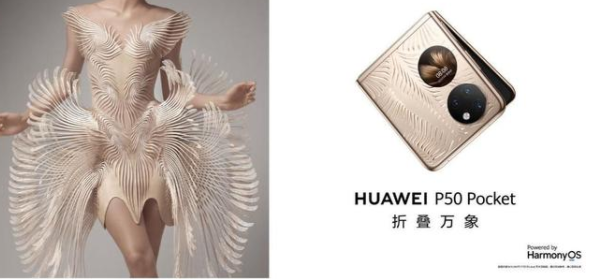華為P50 Pocket外殼為業(yè)界首創(chuàng)的雙面立體微雕工藝,擁有光織交錯的晶鉆,有晶鉆白、曜石黑兩款標準色外,還有提前在Bazar雜志先曝光的「藝術訂制版」金色。