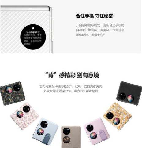華為P50 Pocket提供智能主題保護殼,裝上后內外屏幕都與保護殼同主題、同配色,另外還有皮革支架保護殼。