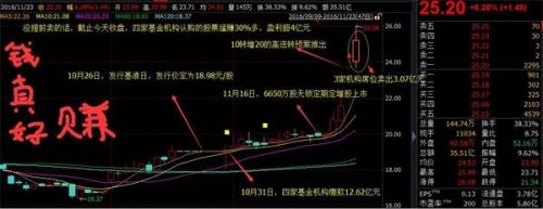 好吧。不糾結(jié)那些細節(jié)了。18.98元認購6650萬股,11月16日上市,11月23日最新收盤價25.2元,期間6個交易日。簡單的數(shù)學題,股價較定增價漲幅32.77%,四家基金機構(gòu)賺了4.14億元。