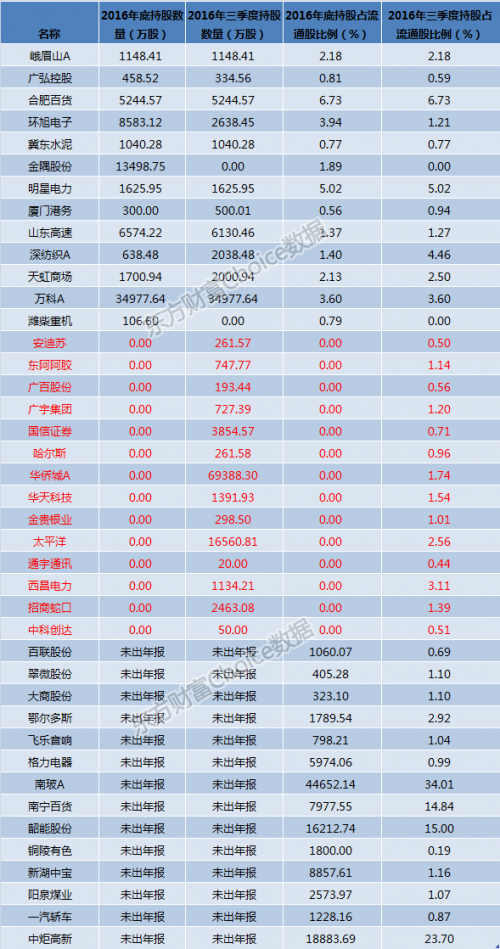 去年三季度,前海人壽旗下多只產(chǎn)品躋身數(shù)十家A股公司的十大流通股東名單,前海人壽合計(jì)持有41家上市公司的股票,其中前海人壽旗下“海利年年”產(chǎn)品層曾出現(xiàn)在33家上市公司的前十大流通股股東,不過(guò)在2016年4季度,前海人壽已經(jīng)賣出了14只股票,比如安迪蘇、東阿阿膠等,均被前海人壽清倉(cāng)賣出。