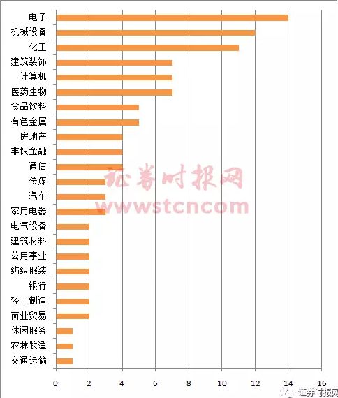 按申萬一級行業(yè)分類看,電子行業(yè)成為機構(gòu)調(diào)研的重點,涉及的公司數(shù)量為14家,機械設(shè)備行業(yè)緊隨其后,累計12家公司被調(diào)研。另外,化工、建筑裝飾、計算機等行業(yè)被調(diào)研的公司數(shù)量也較多。