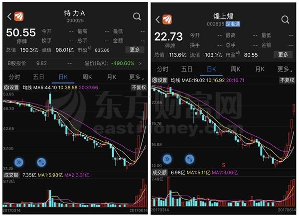 6月8日至6月14日,特力A五天四漲停,煌上煌則是三連板。與6月1日的開盤價(jià)對(duì)比,特力A的股價(jià)已從34.74元上漲至50.55元,漲幅約45%;煌上煌的股價(jià)已從15.47元上漲至22.73元,漲幅約47%。