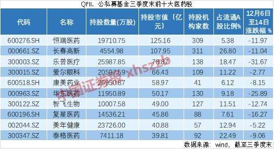 從三季報(bào)數(shù)據(jù)看,醫(yī)藥生物板塊是QFII、公募、私募基金的第一大重倉行業(yè),持股市值合計(jì)達(dá)1465.43億元,占流通股比例為4.49%。