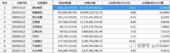 圖8:深市持股總市值排名前十,1年來持股走勢