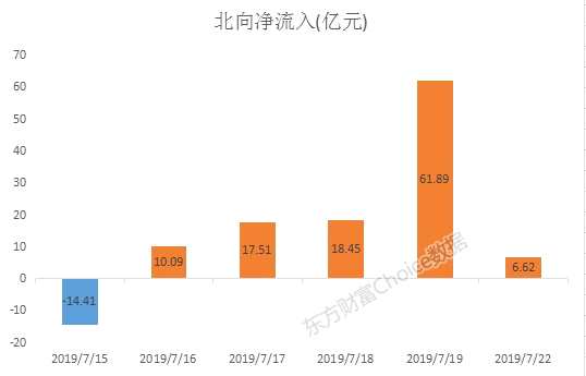 數(shù)據(jù)顯示,7月15日至今的6個(gè)交易日中,北向資金凈流入5天,合計(jì)凈買(mǎi)入100.15億元。